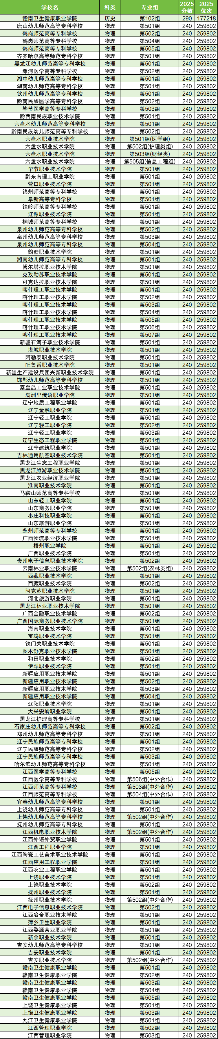 (2)江西(2025物理类专科线为240分、历史类专科线为290分)