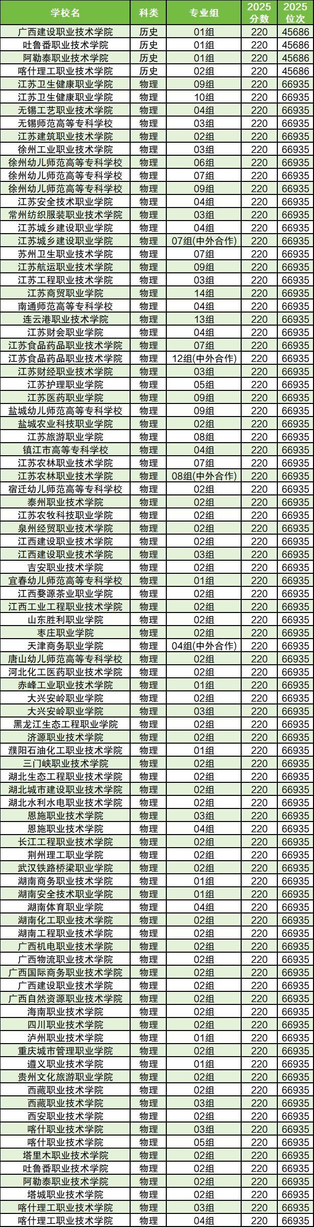 如2025年江苏省专科线为220分,在省内招生的最低分公办大专有喀什理工职业技术学院、新疆和田学院、遵义职业技术学院等。