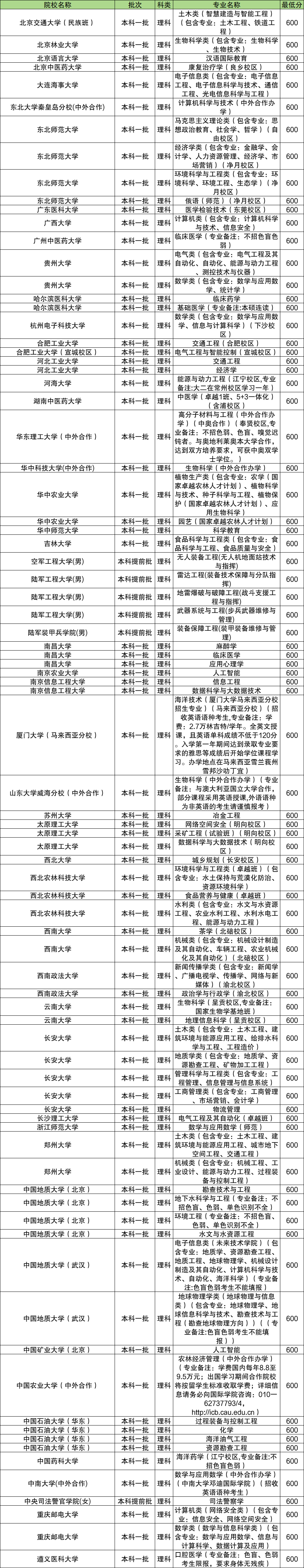 从全国大学四川省高考的分数来看,600分的理科考生能报考的专业,以及对应的学校如下表: