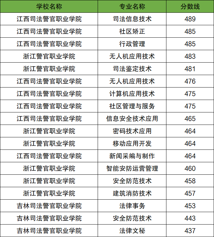 1、江西司法警官职业学院,司法信息技术专业,489分