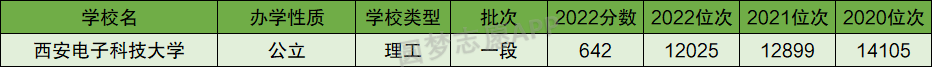 根据上图可知,西安电子科技大学2022年在浙江省一段的投档分数线为642分。