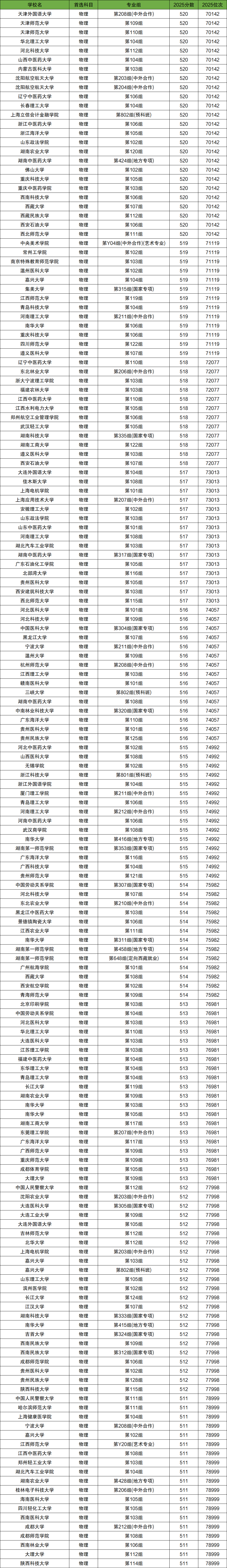 因为本文篇幅有限不能所有分数一一整理,以下将介绍湖南高考中物理类排名位次对应大学中前1万名、7-8万名对应的大学。
