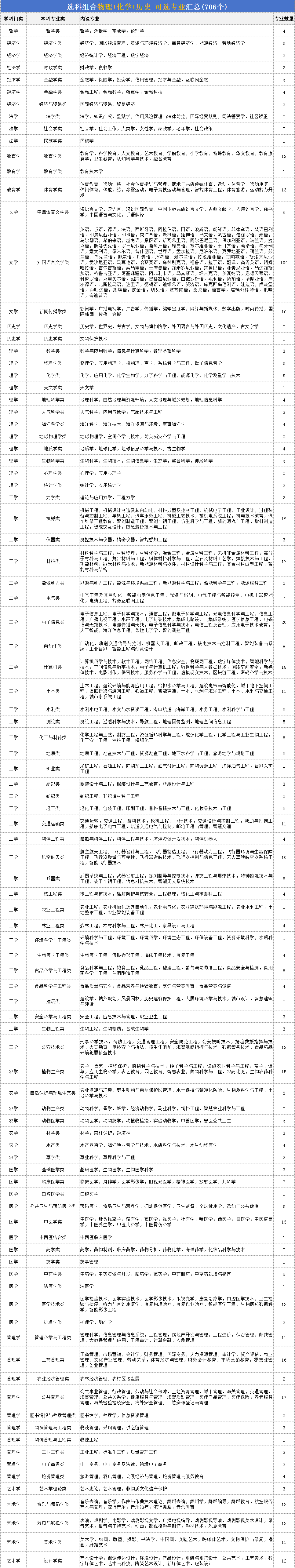 根据教育部指引目录的信息来看,物化历2025可选专业共计706个,完整的专业统计表直接见下: