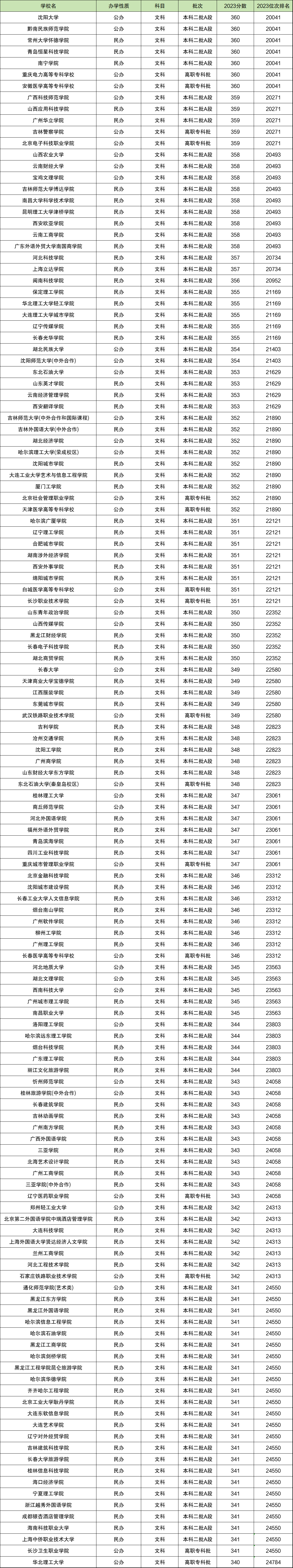 在2万-2.5万位的范围内,最高位次对应的大学是沈阳大学、黔南民族师范学院等7所,最低录取位次为20041位,位次对应分数为360分;