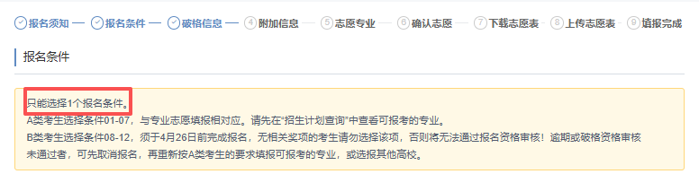 2、限报1所:每位考生只能报考1所高校,请结合自身优势慎重选择。