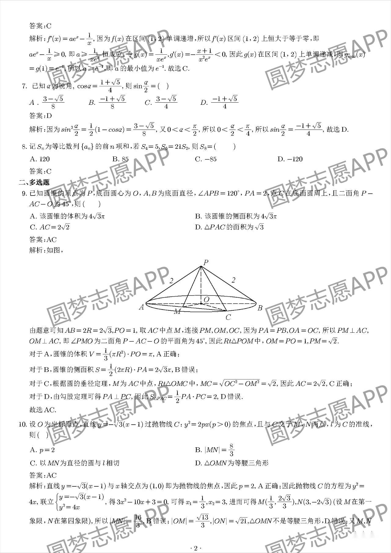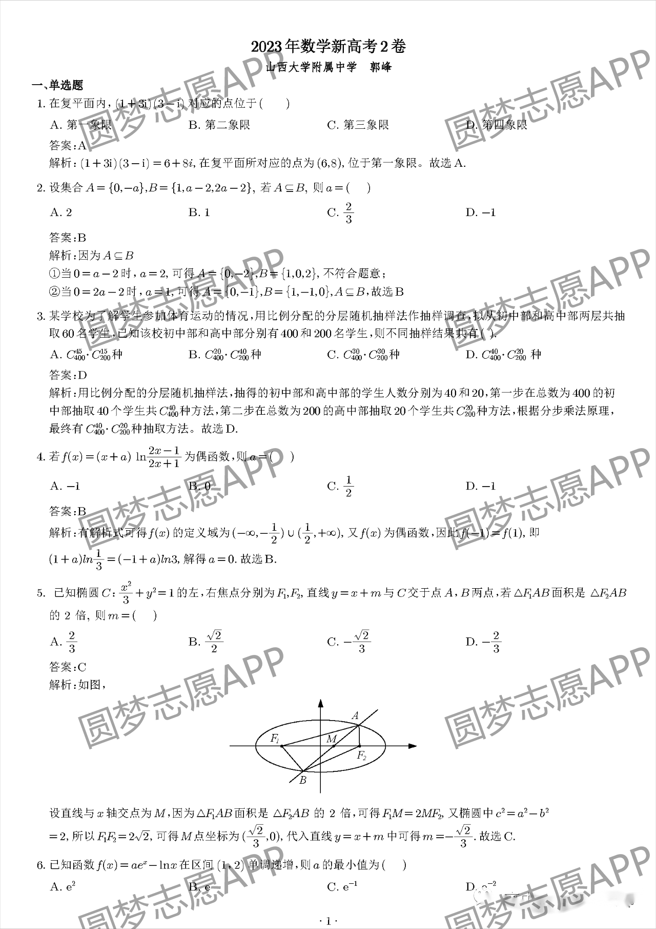 二、2023年云南高考数学答案解析