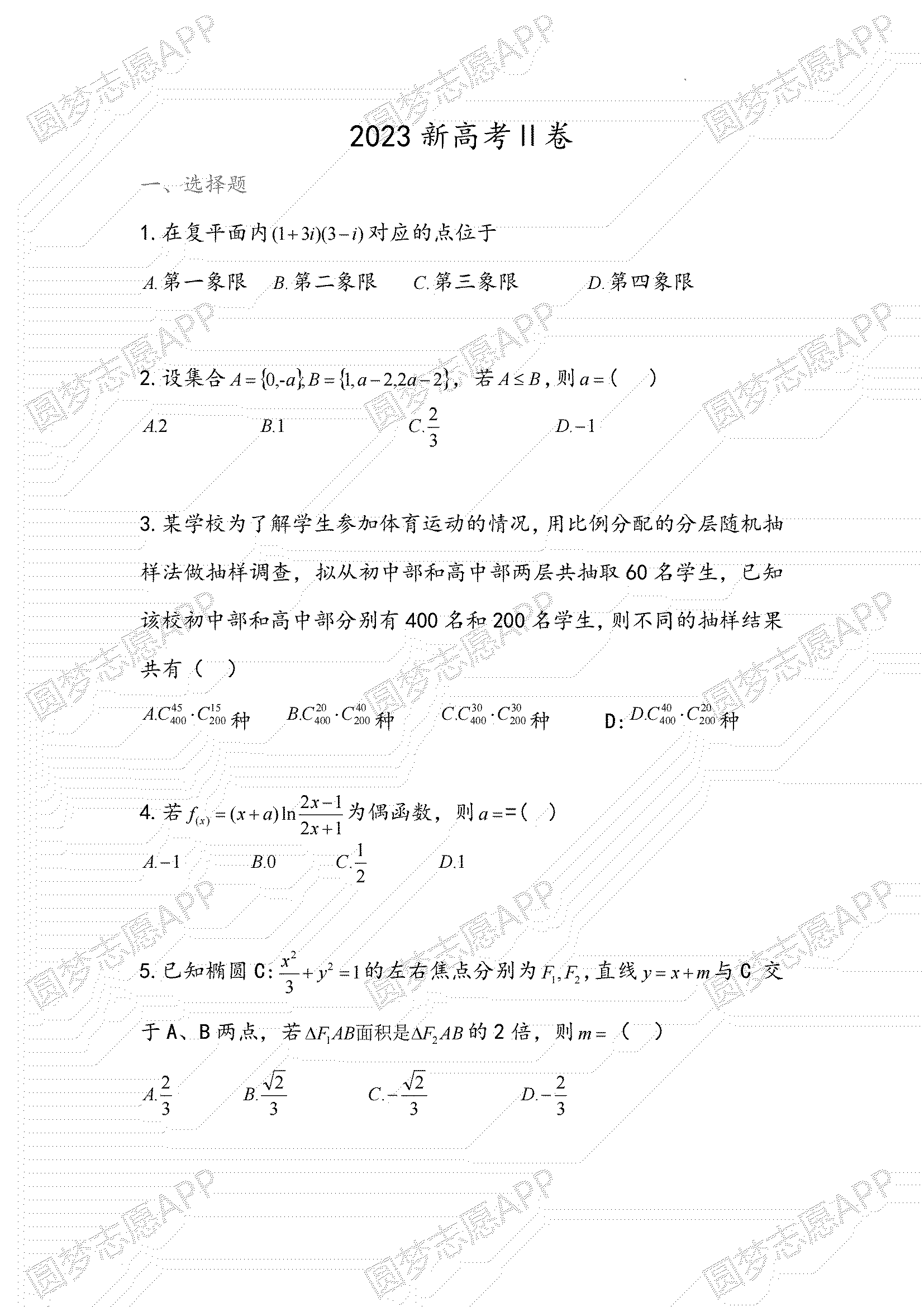 一、2023年云南高考数学试卷真题