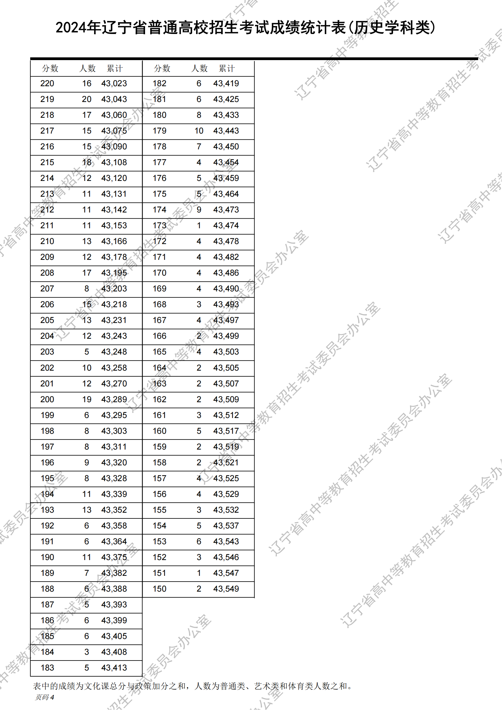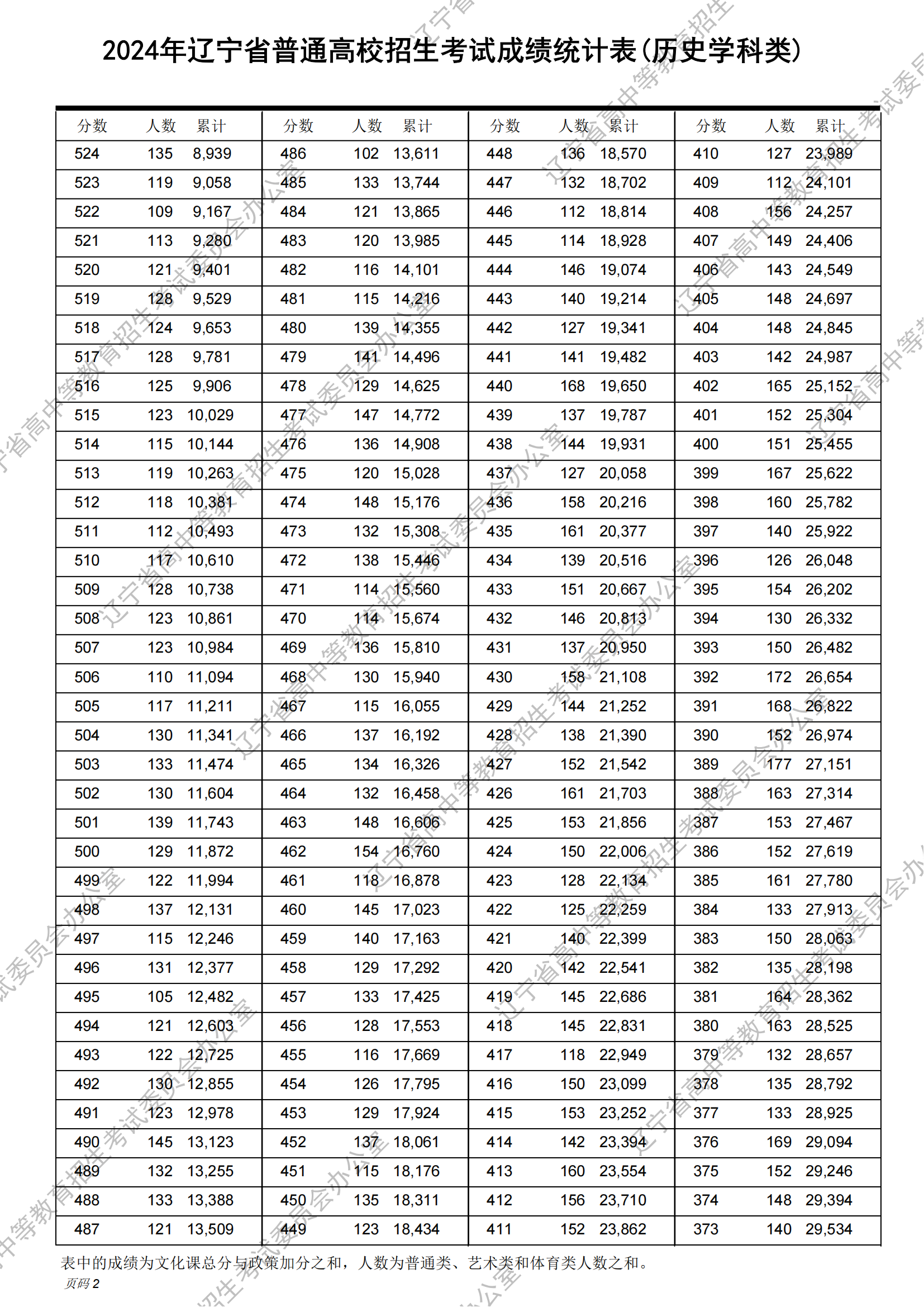 二、2024辽宁高考历史类一分一段表