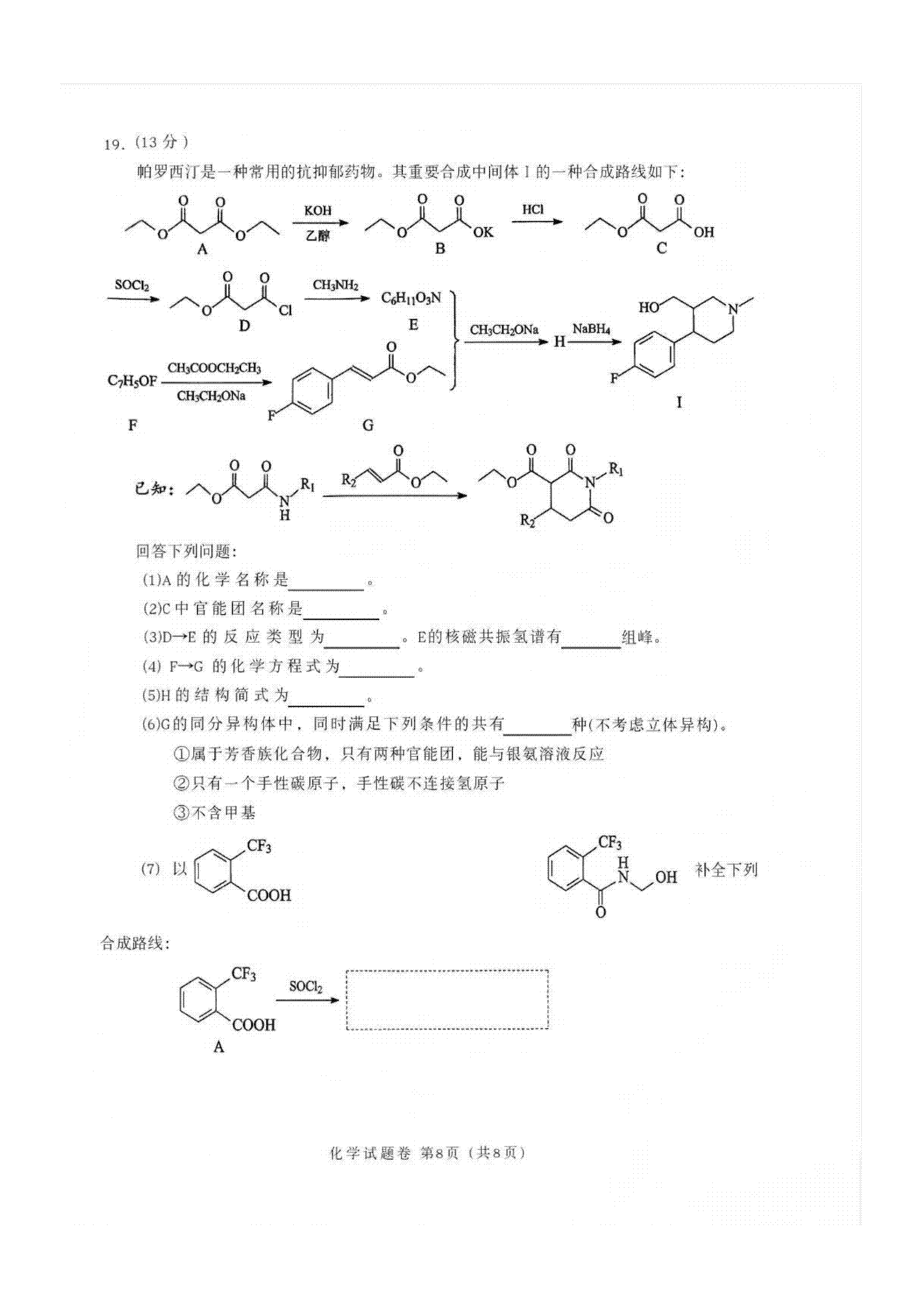 ⑧ 解答推断题时,需结合题意,对无机物与有机物进行综合、全面的考虑,并把握关键词与关键步骤。