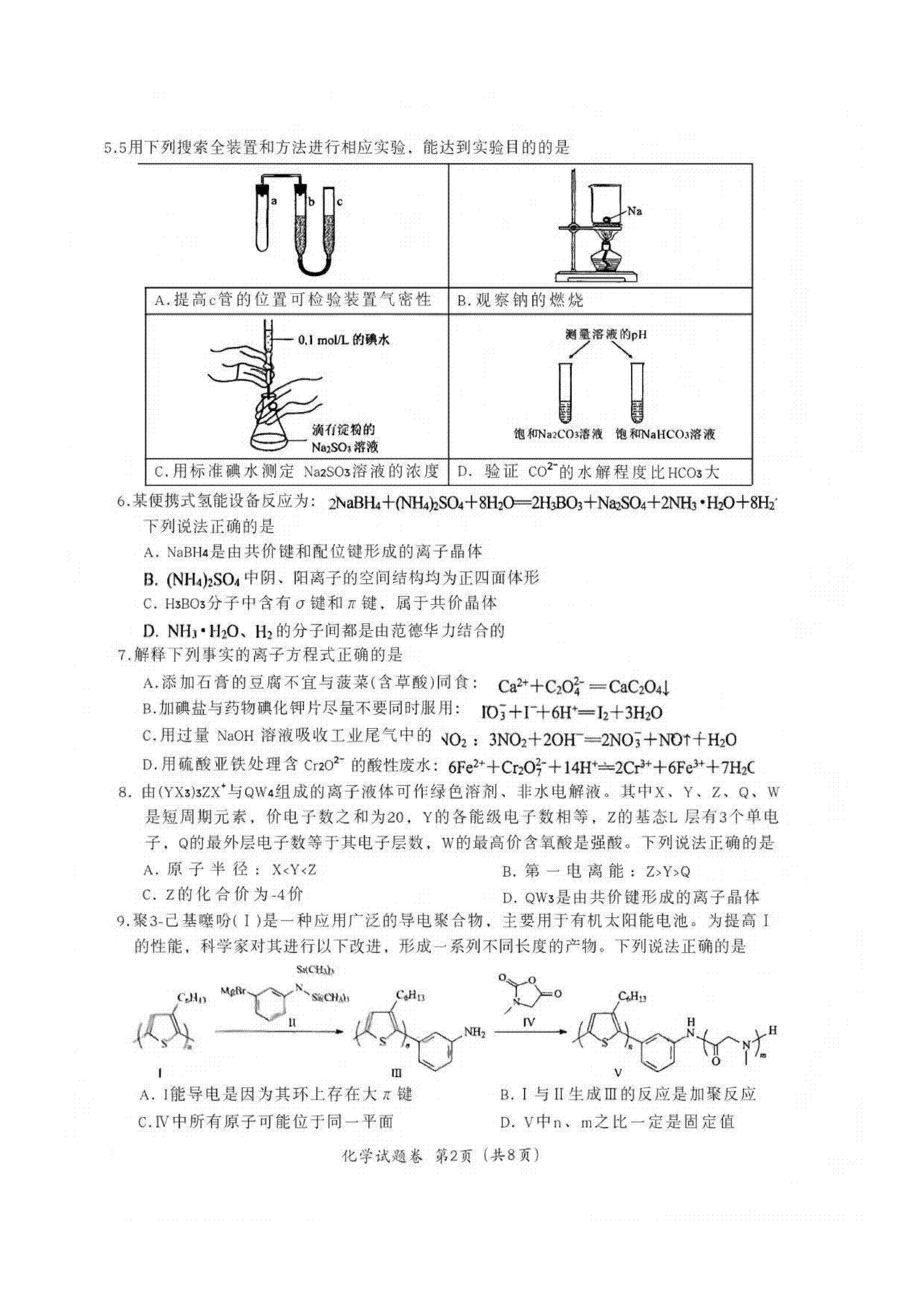 一、2026绵阳二诊化学试卷及答案解析
