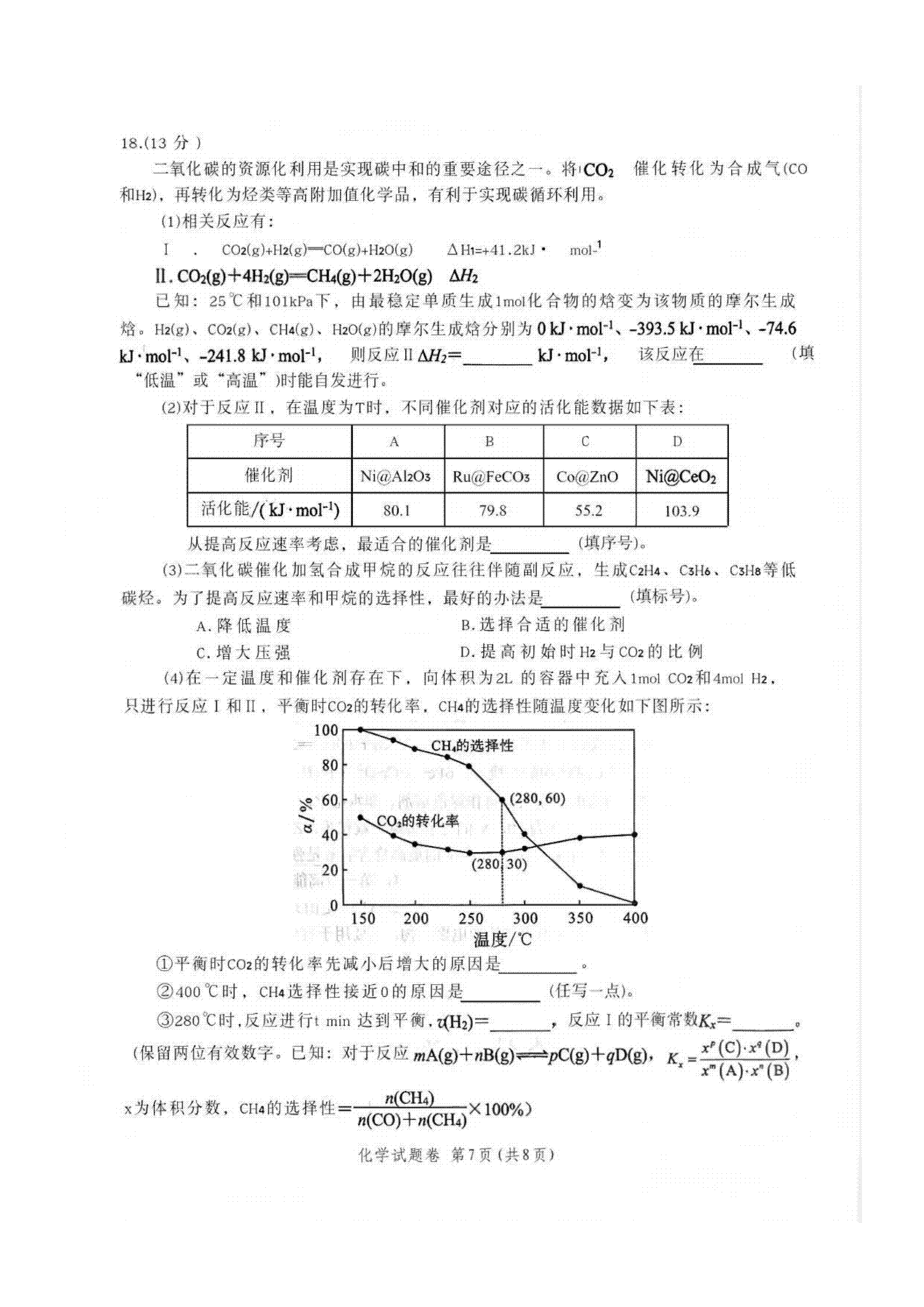 (一)绵阳二诊化学A卷试卷及答案