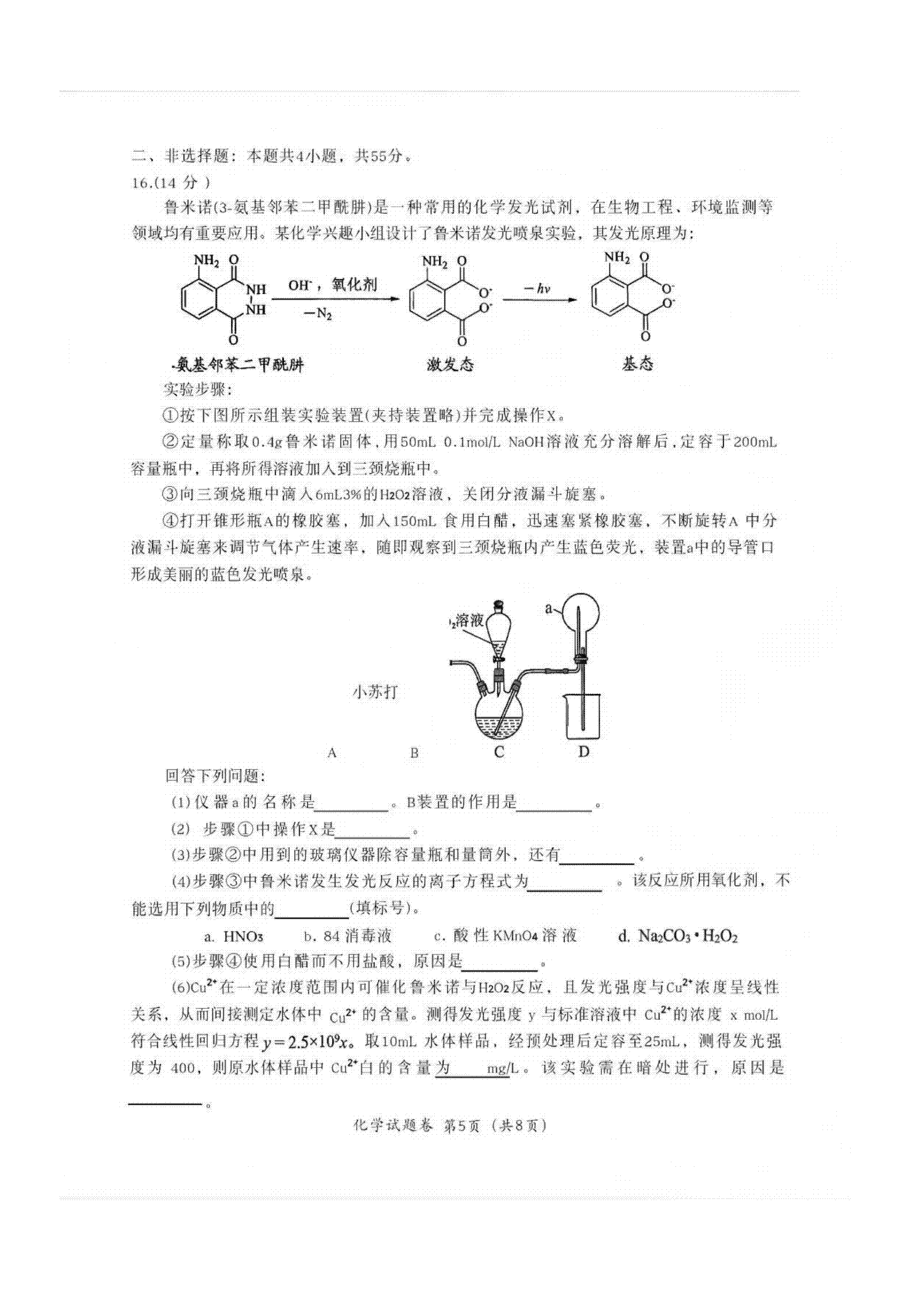 (二)绵阳二诊化学B卷试卷及答案