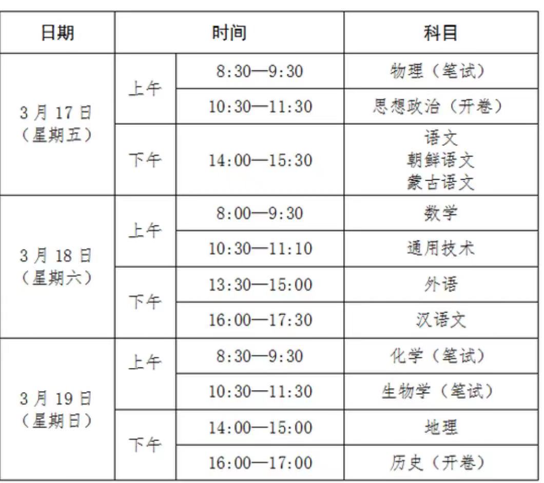 以下为2023吉林省普通高中学业水平合格性考试时间安排表: