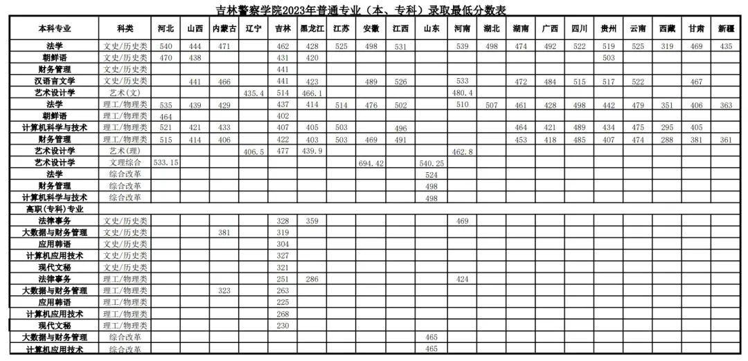 篇幅有限,以上是吉林警察学院2025年在各省本科批招生录取最低分情况,供参考。