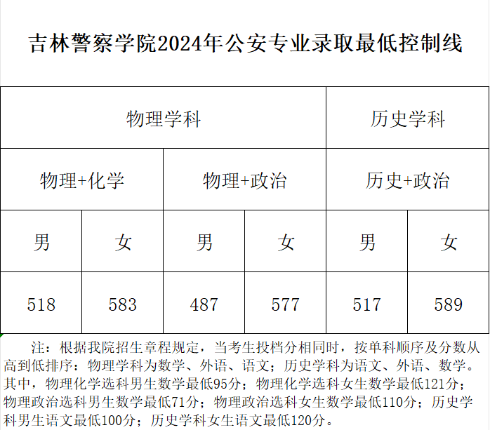 篇幅有限,以下是吉林警察学院2024年的录取最低控制线,供参考: