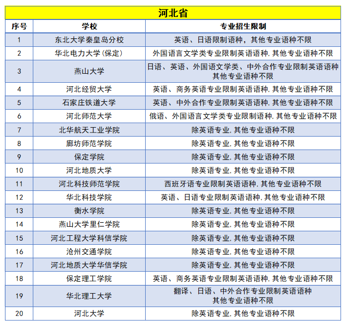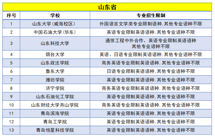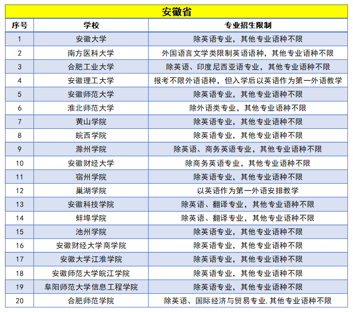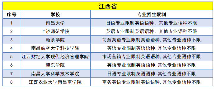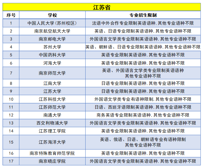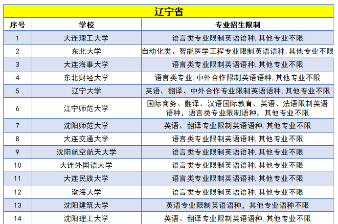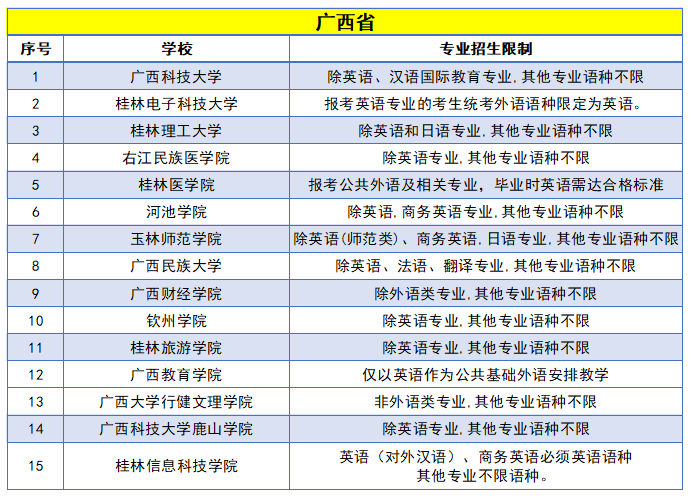 以下根据阳光高考官网的招生信息,汇总了11个省份对外语做出限制的学校和专业,给大家参考。