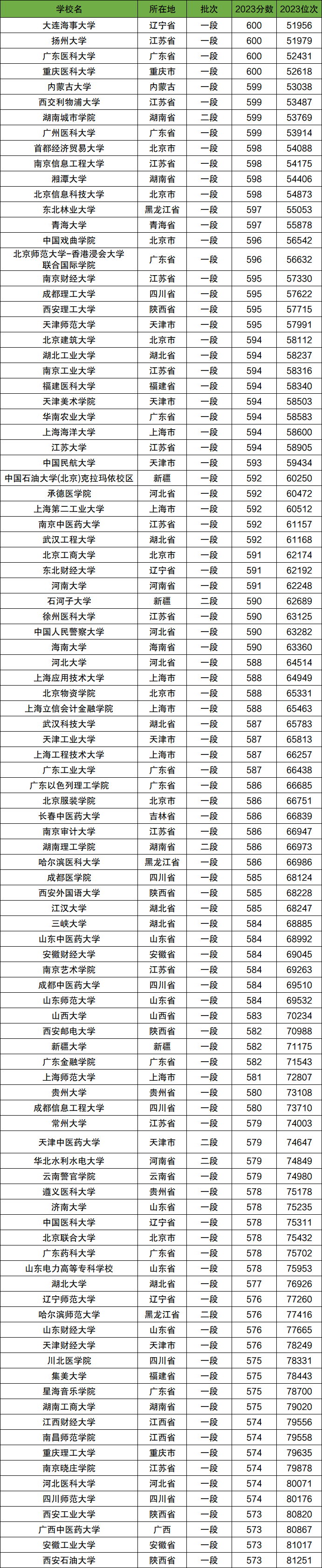 以下为2023年在浙江省550到600分的全国大学名单(浙江省以外)。