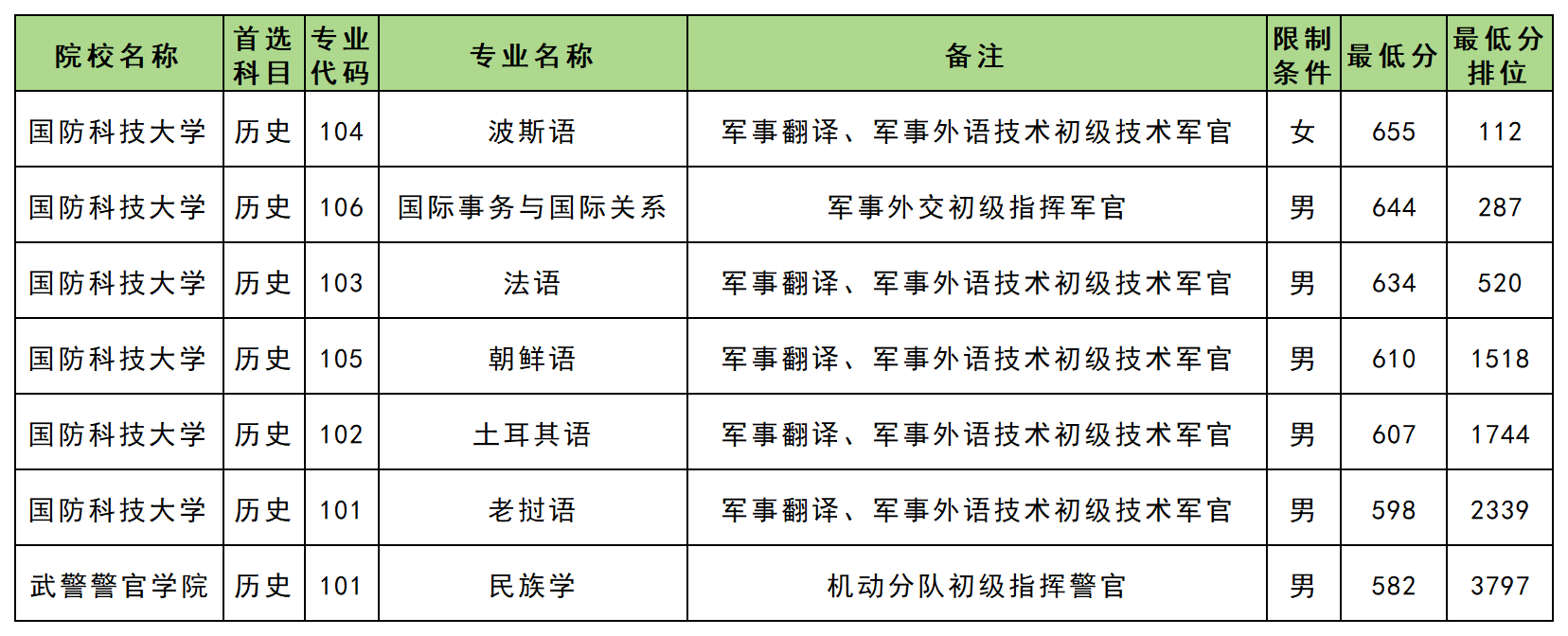 2025年各军校在贵州历史类的录取分数线如下: