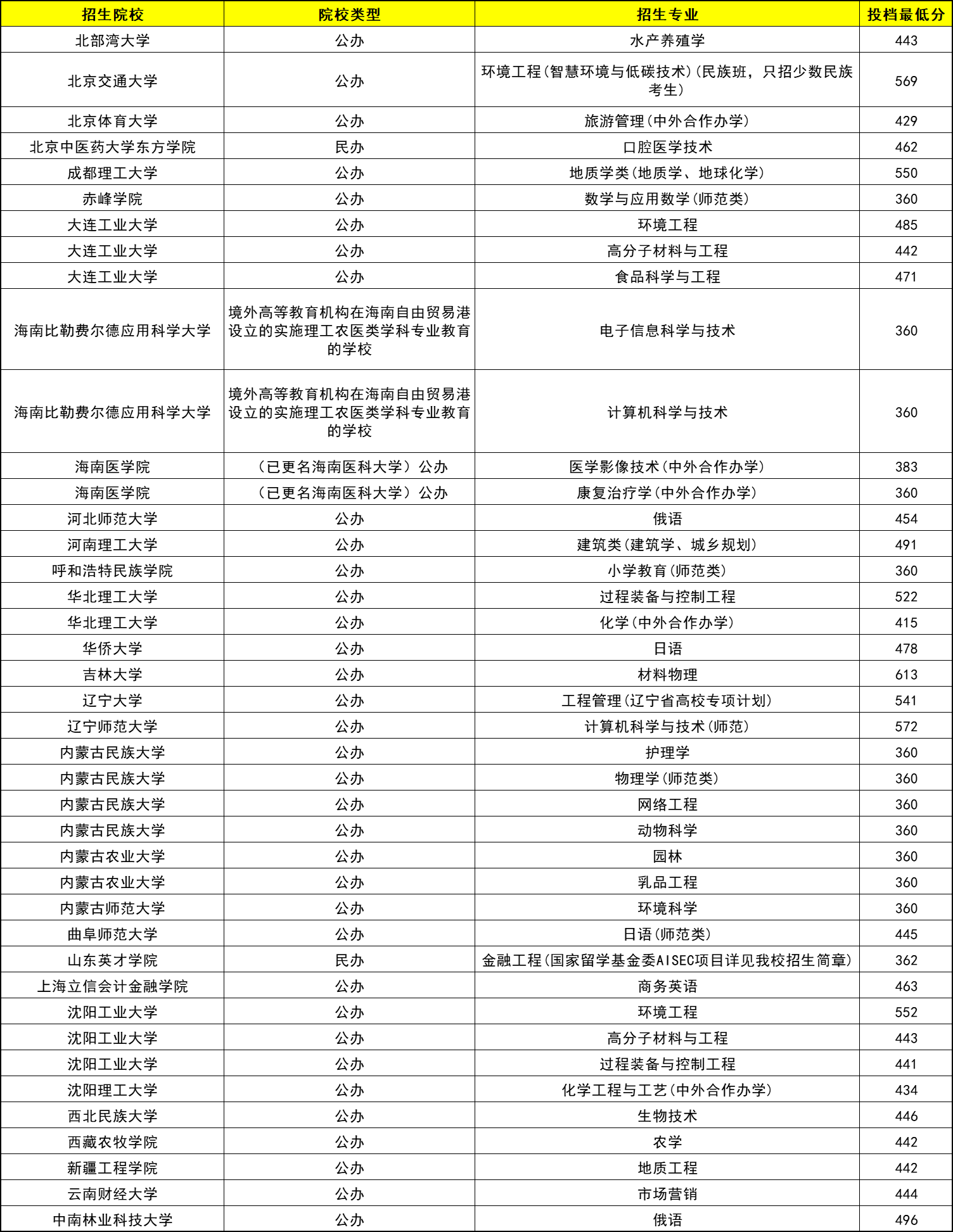 征集志愿院校名单每个省份都不一样,有的省份民办高校名额多一些,也有一些公办高校名额比较多。比如2023年辽宁本科批征集志愿院校就以公办院校为主。不过,征集志愿院校虽然为公办高校,但招生专业有的为中外合办专业,这些专业学费很贵,报考前要提前了解一下收费情况再做决定。