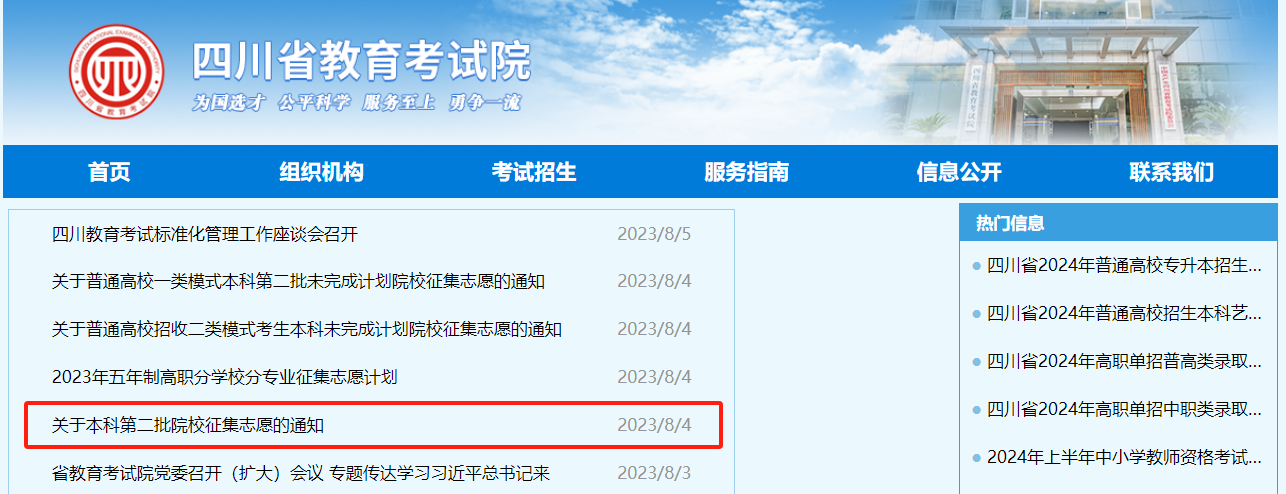 各批次招生录取结束之后,考试院都会汇总有缺额计划的高校名单并在官网公布,所以查询名单可以去省考试院查询。以四川省为例,进入首页后,点击【最新动态】处的更多,即可找到往年征集志愿的院校及专业名单。