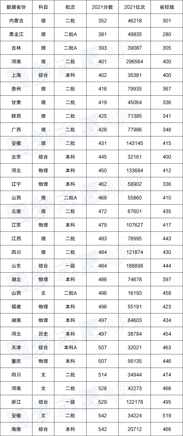 从上图我们可以看出,河北建筑工程学院在大多数省份的录取分数线都是在400~500分左右,只有在如河南、浙江、安徽、海南这些省份的录取分数线才比较高,但是相对应省份的省控线也是比较高的。所以总的来说这所大学是一所分数不高但是就业率较高的二本大学。
