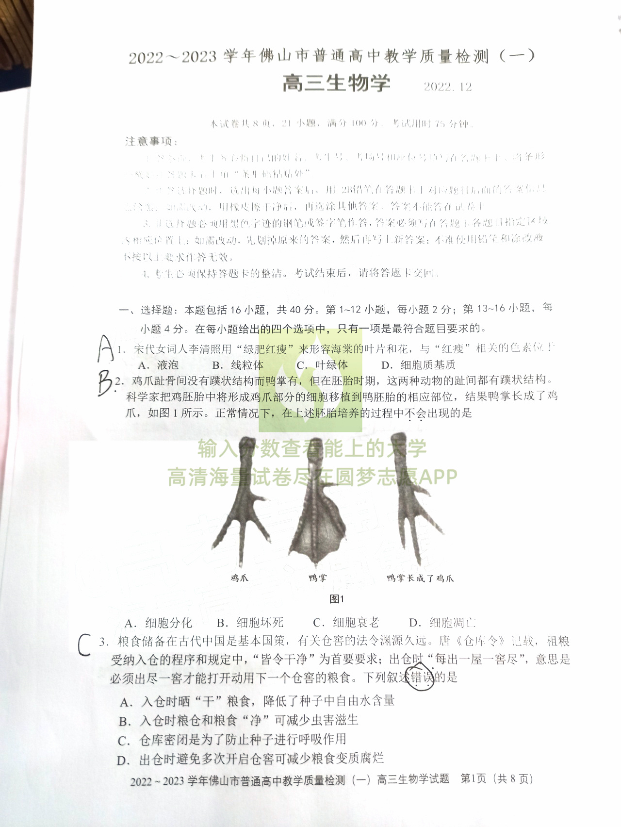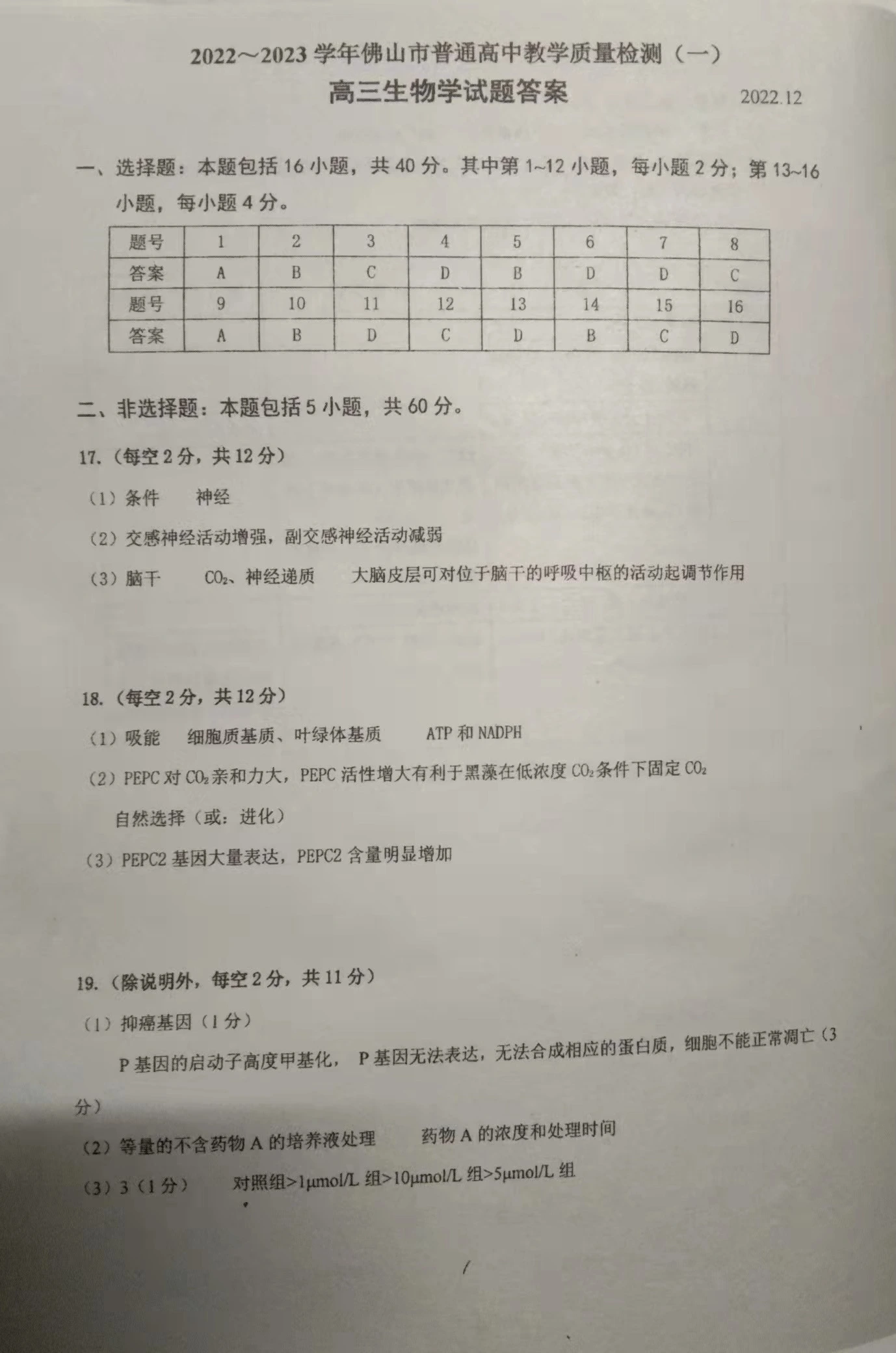2023佛山一模考试将于2023年2月6日开考,考试结束后本文将更新2023年广东佛山一模考试生物参考答案及试卷,下文为小编搜集整理的2023佛山一模生物试卷及答案,供大家参考。