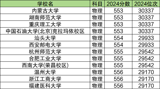 为了方便同学们参考,本文在此整理了位次在1000、10000以及30000左右的物理类部分院校,具体如下: