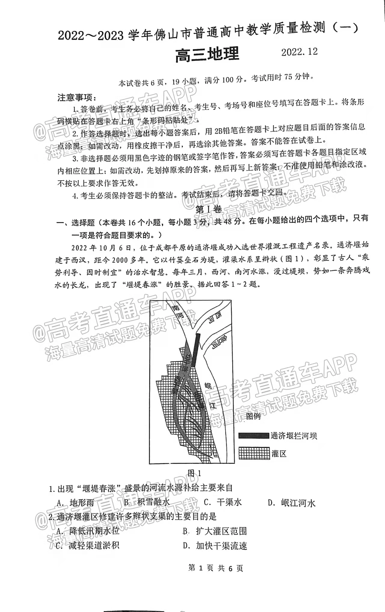 一、2023佛山一模地理试卷原题