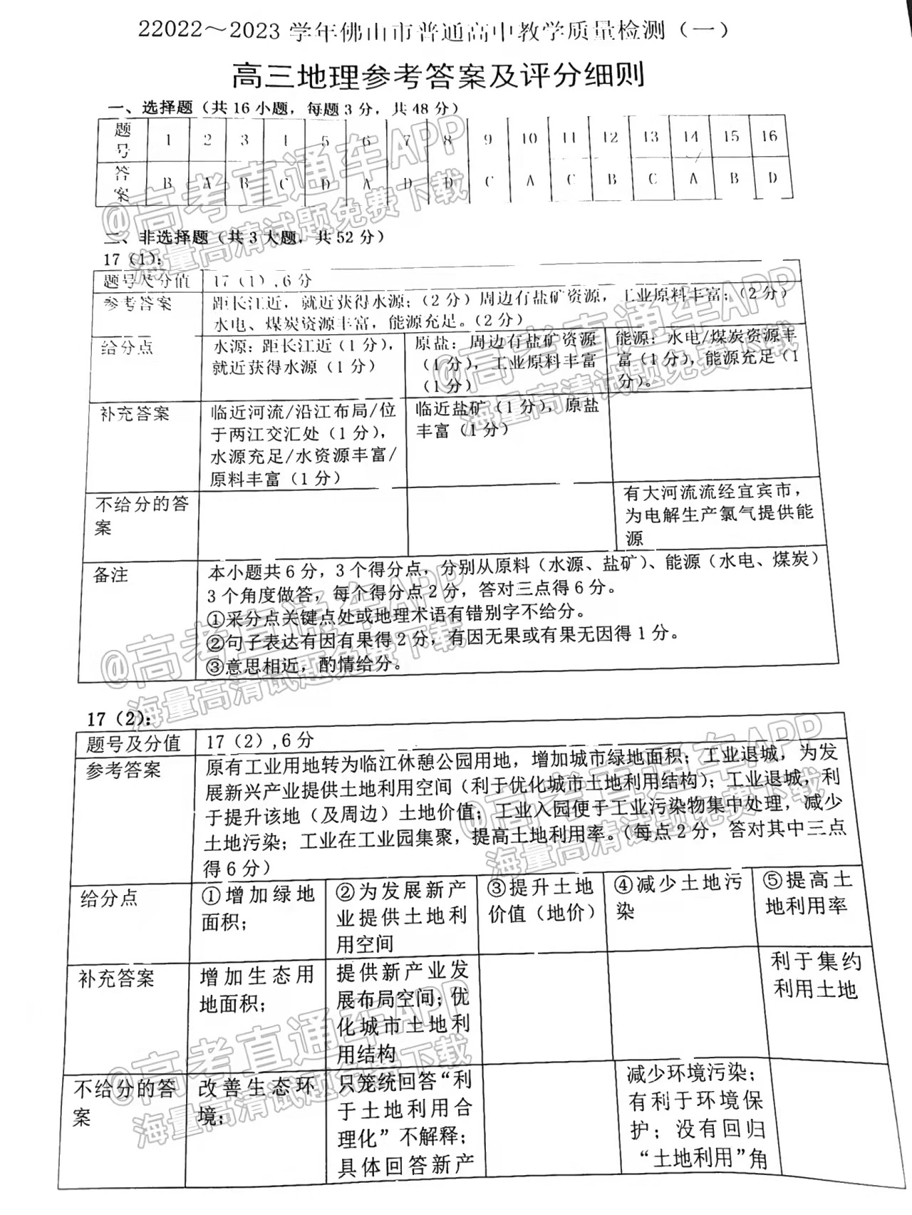 二、2023佛山一模地理答案解析