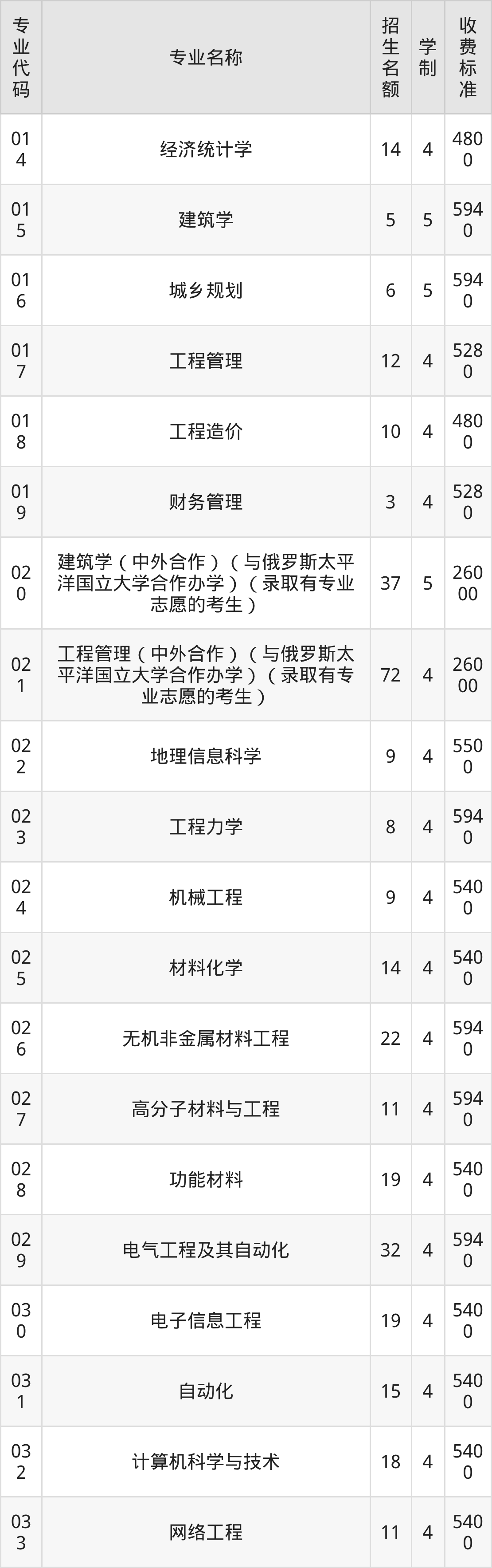 | 006 | 建筑学(中外合作)(与俄罗斯太平洋国立大学合作办学)(录取有专业志愿的考生) | 28 | 5 | 26000 |