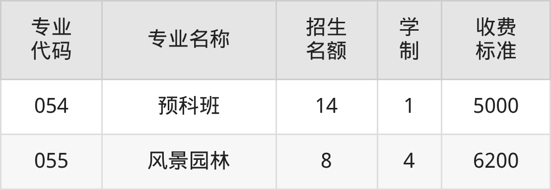 | 专业 代码 | 专业名称 | 招生 名额 | 学 制 | 收费 标准 |