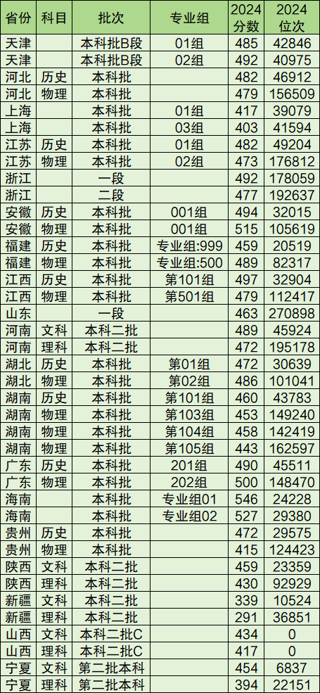 | 省份 | 科目 | 专业组 | 2024 分数 |