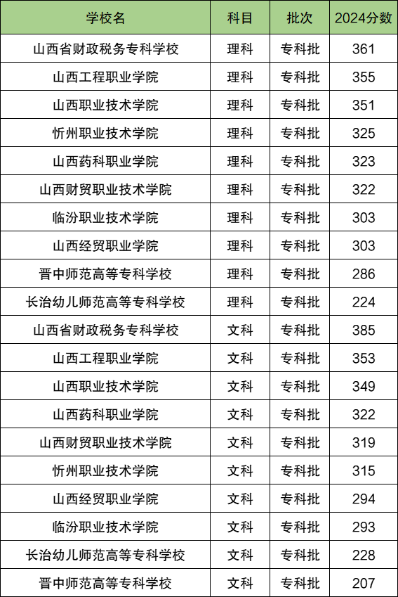 根据山西2024年高考录取分数线,本文整理出了山西前十名专科大学在文科和理科的最低录取分数线,以供考生和家长参考。