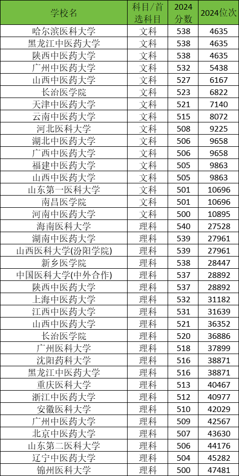 录取分数线在500-540分的公办医科大学有广州中医药大学、北京中医药大学、复旦大学上海医学院、中国药科大学等,本文为大家介绍贵州、黑龙江、山西等省份2024年500-540分可上的公办医科大学名单,供2025届的高考生查阅。