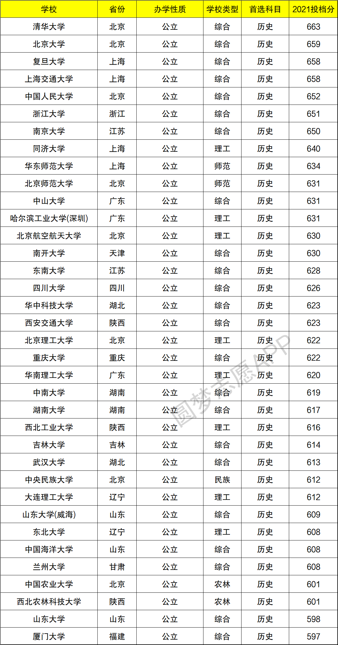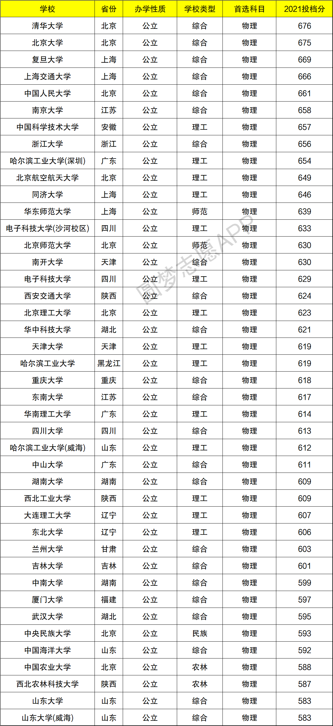 2021年中南财经政法大学在湖北省首选历史的最低分为607分,首选物理为601分。从下图中985大学在湖北省的投档线可以看出,比中南财大分数线低的985大学不多,且基本是排名比较靠后的985大学,比如西北农林科技大学、中央民族大学、中国海洋大学。