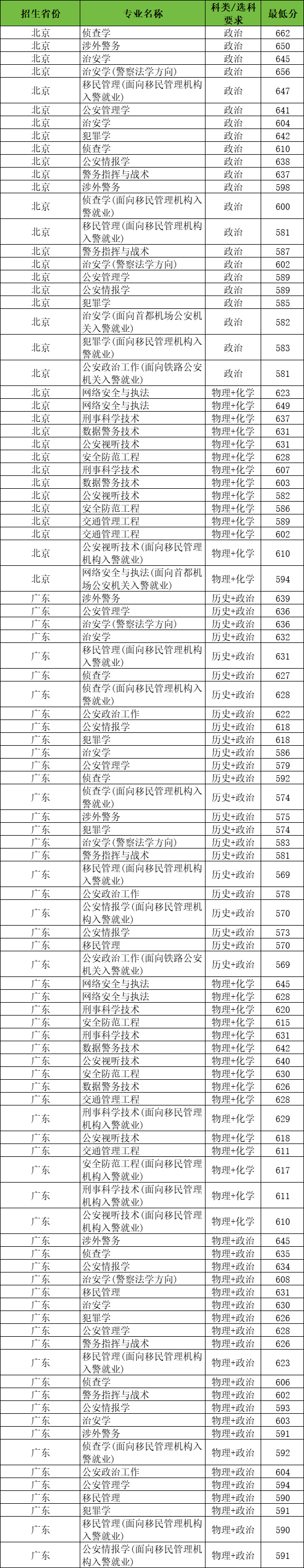 下面是2024年中国人民公安大学在北京、广东录取分数线一览表: