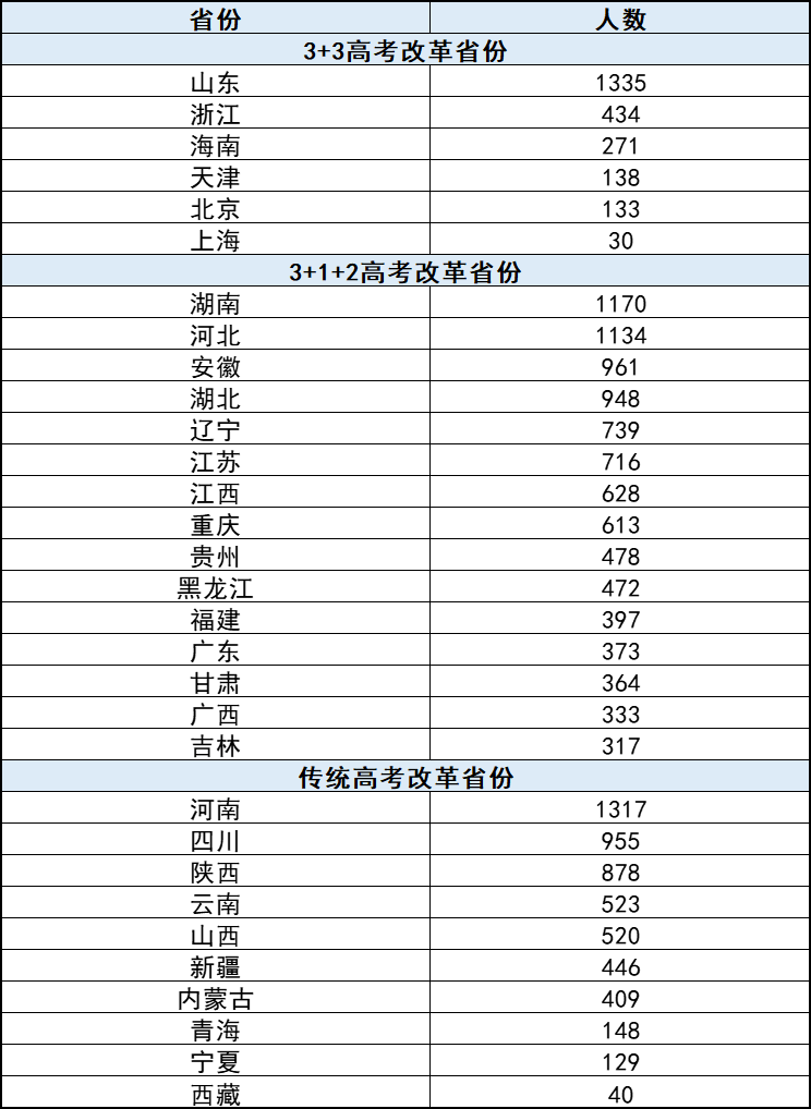 二、军校在各省招生人数排名