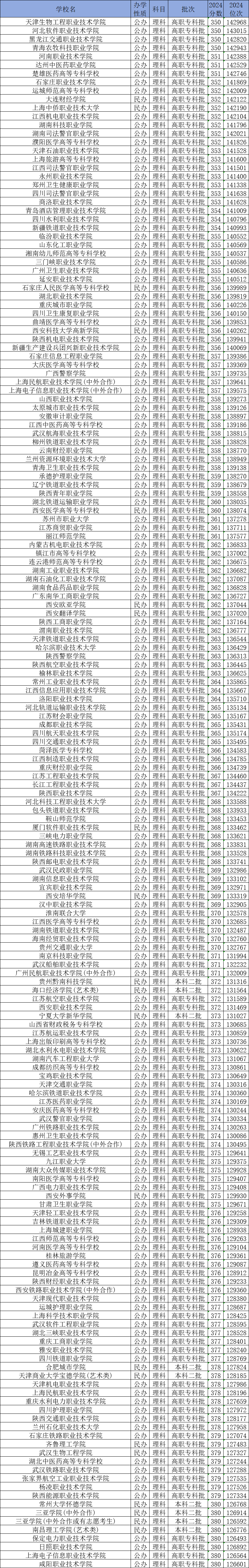 350分到380分的中分段考生可以上的学校有湖南大众传媒职业技术学院、南阳医学高等专科学校、广西电力职业技术学院等,这些学校最低分均是375分,全部都是专科院校。