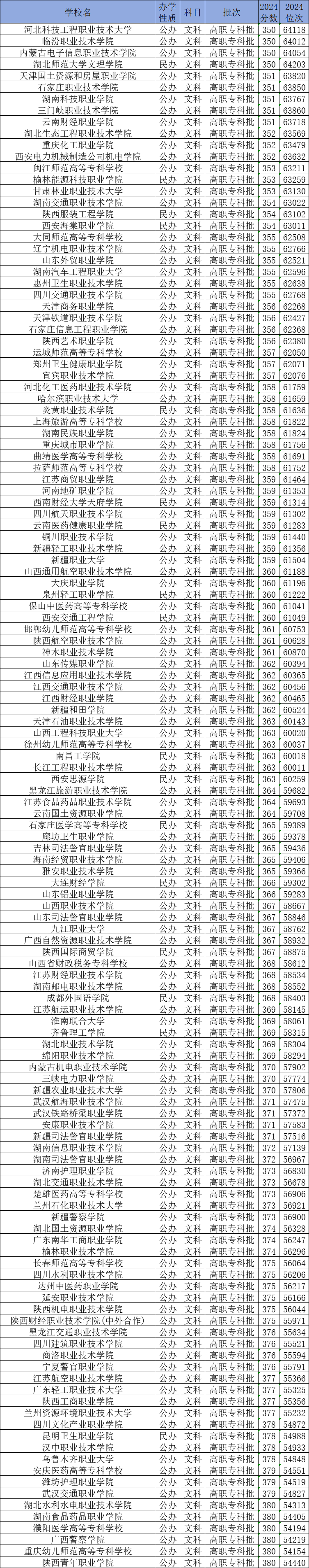 各省350分到380分的大学名单不同,本文以陕西省为例,分别整理文科、理科录取分数线位于350-380分的大学。