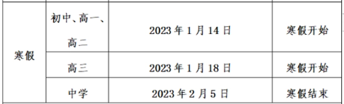 高中学校(含中等职业学校)放假时间:2023年1月13日-2023年2月26日