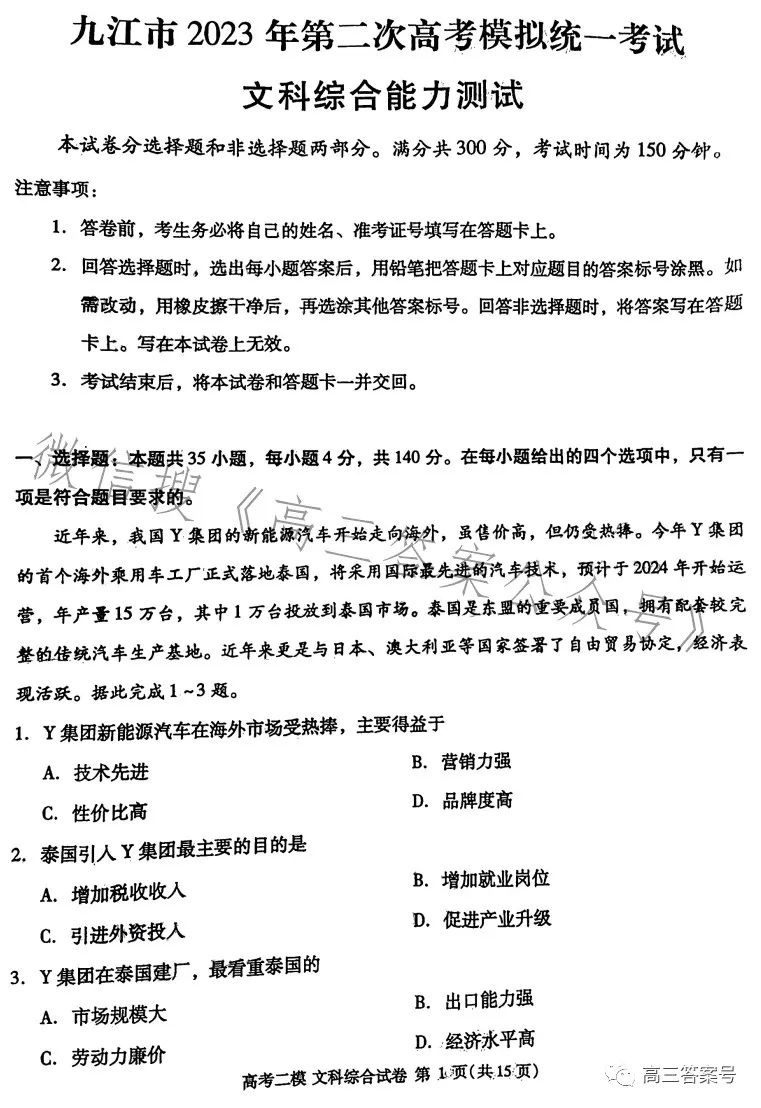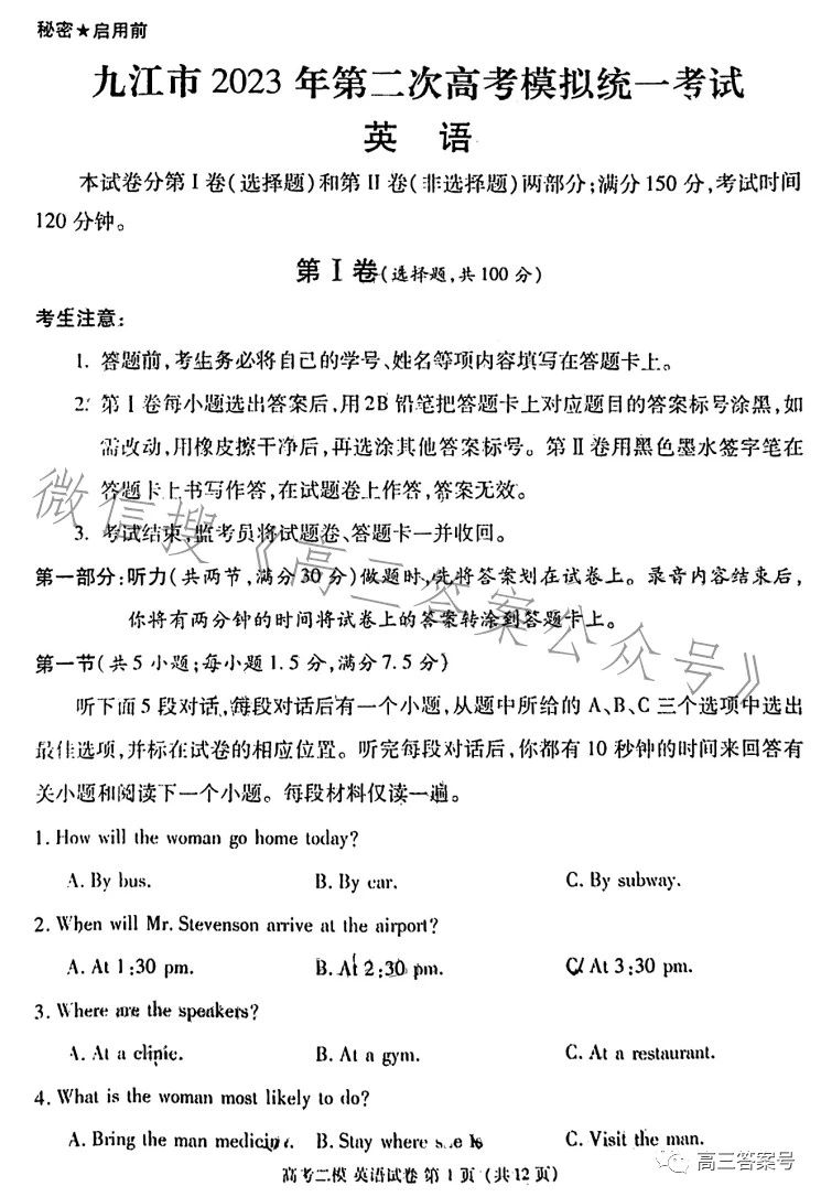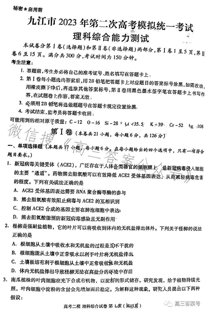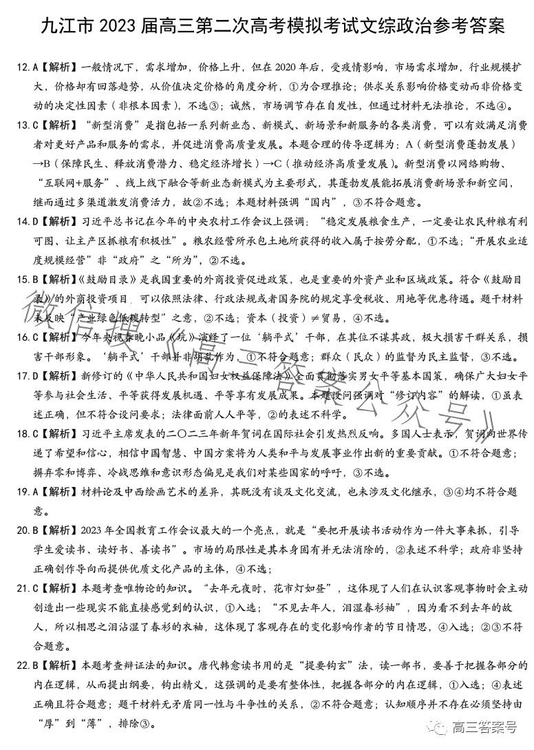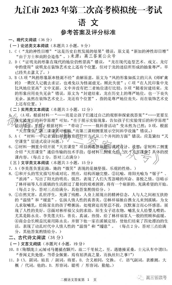 2023年江西九江二模将于3月26日开考,本文将在考后更新所有科目试题及答案。圆梦志愿小编整理了2023九江二模各科试卷及答案,包括语文试卷及答案、数学试卷及答案、英语试卷及答案、文综试卷及答案、理综试卷及答案等,供参考。
