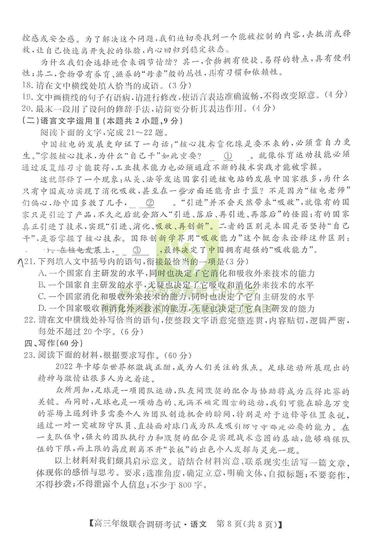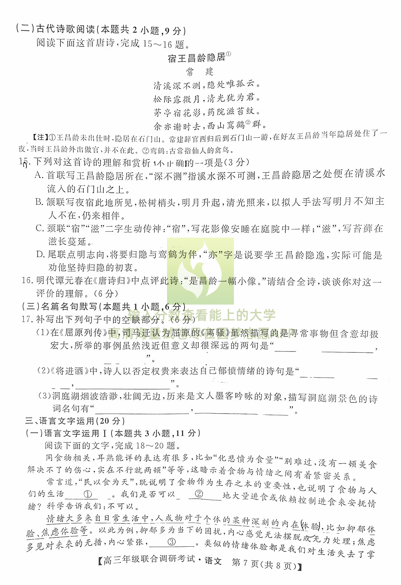 2023湖北部分市州高三年级联合调研考试将于2023年1月9日开考,考试结束后本文将更新2023湖北部分市州高三年级联合调研考试语文答案及试卷,下文为小编搜集整理的2023湖北高三元月调考语文试题及参考答案,供大家参考。