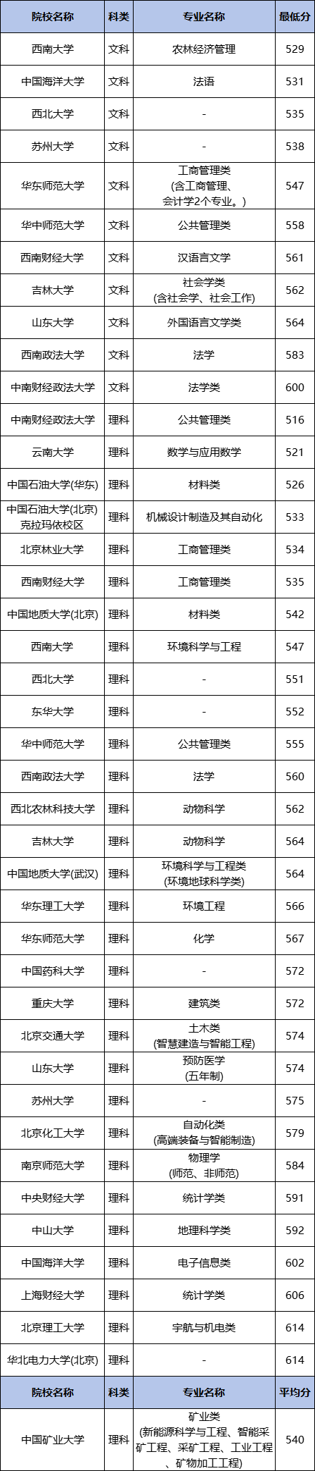 12、兰州大学:理科最低599分;文科经济学类专业分数最低,需要551分。