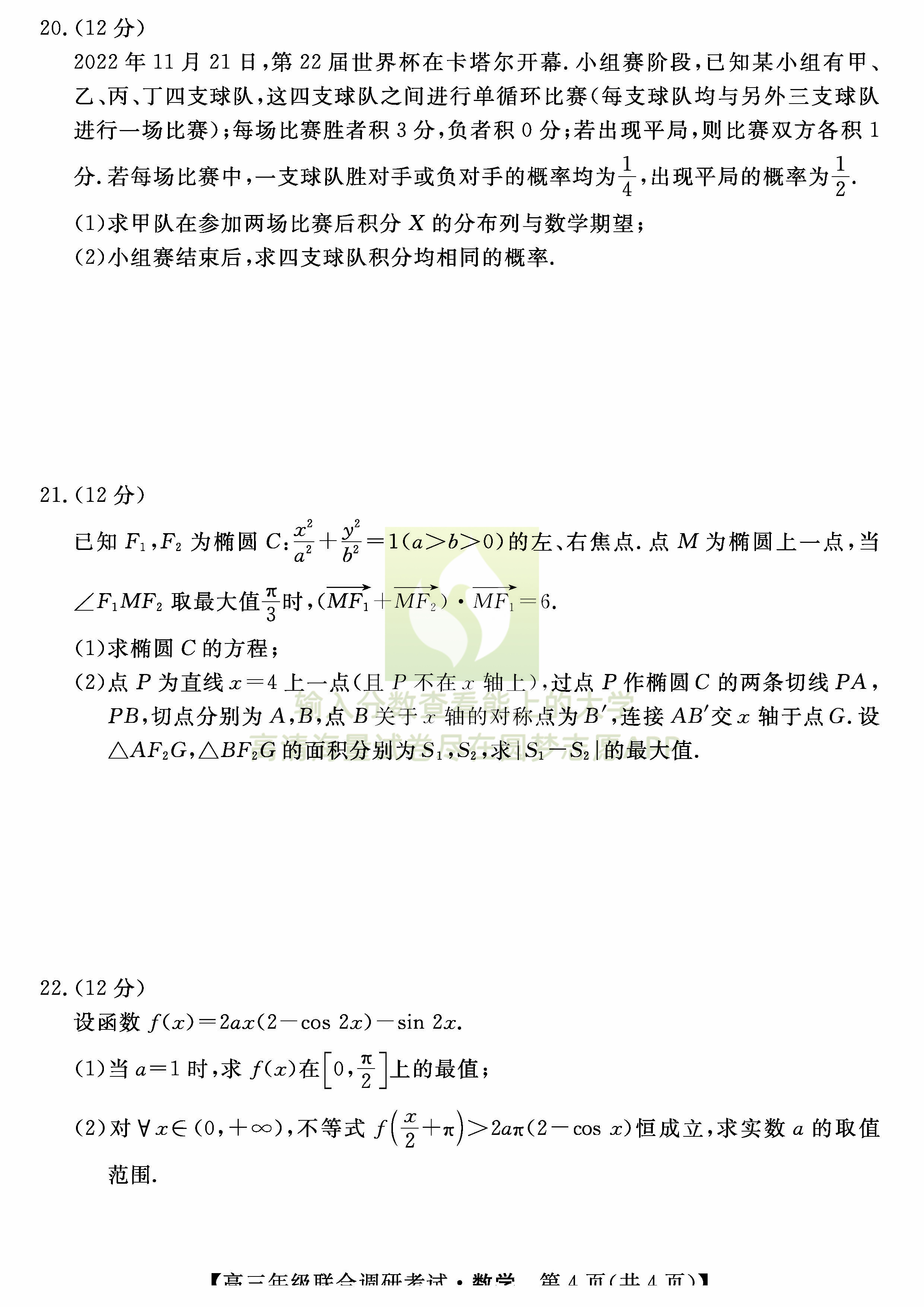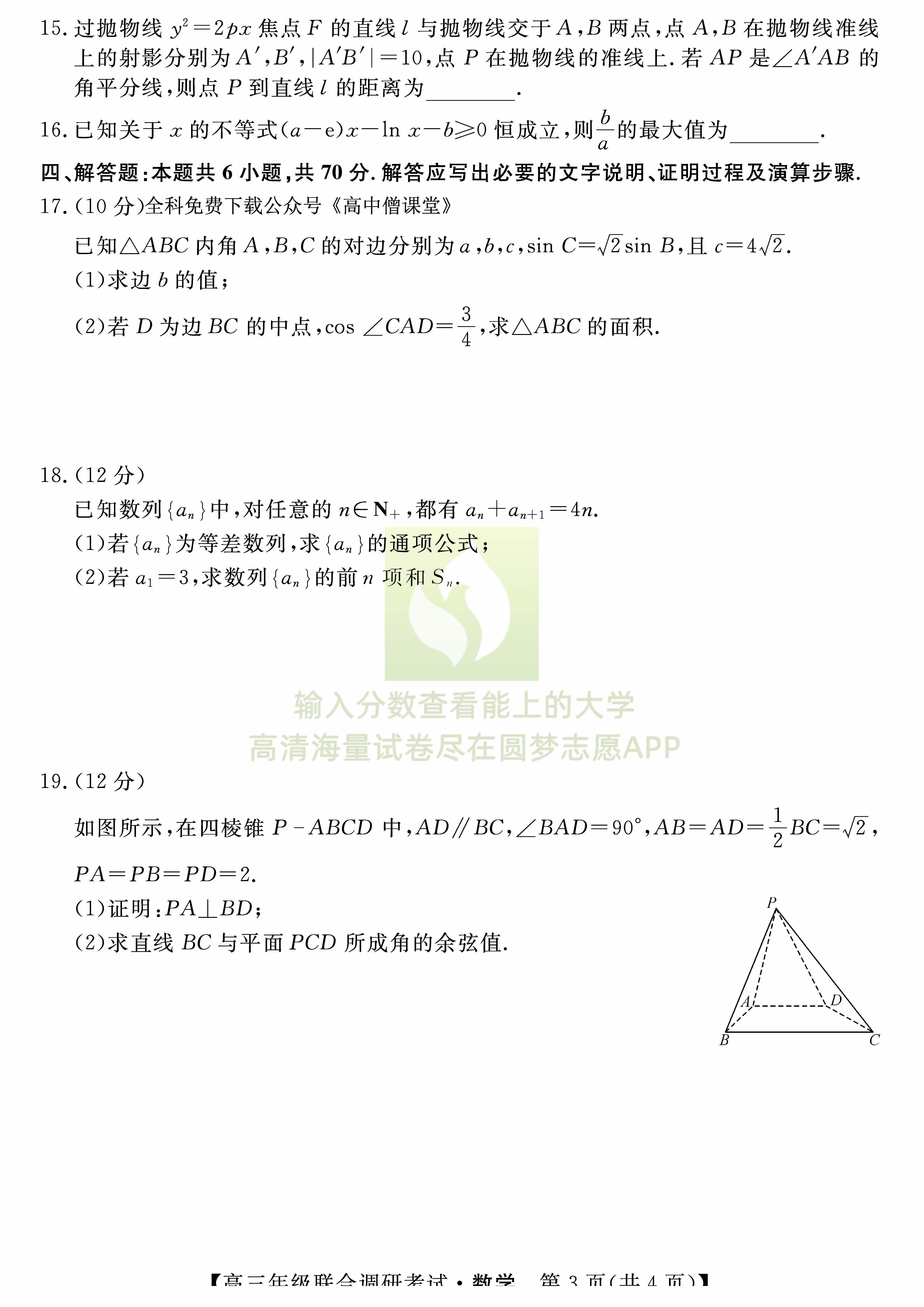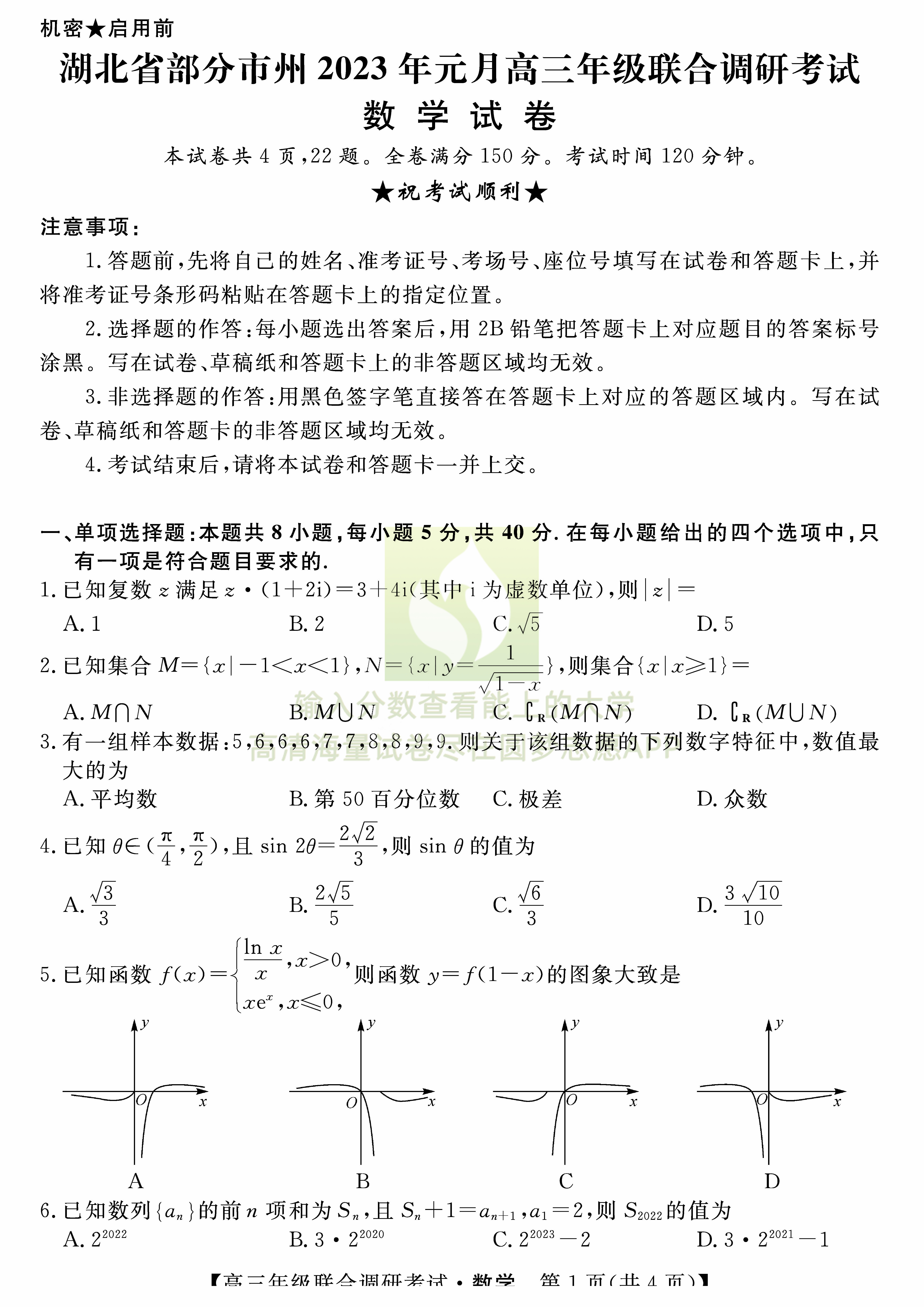2023湖北部分市州高三年级联合调研考试将于2023年1月9日开考,考试结束后本文将更新2023湖北部分市州高三年级联合调研考试数学答案及试卷,下文为小编搜集整理的2023湖北高三元月调考数学试题及参考答案,供大家参考。