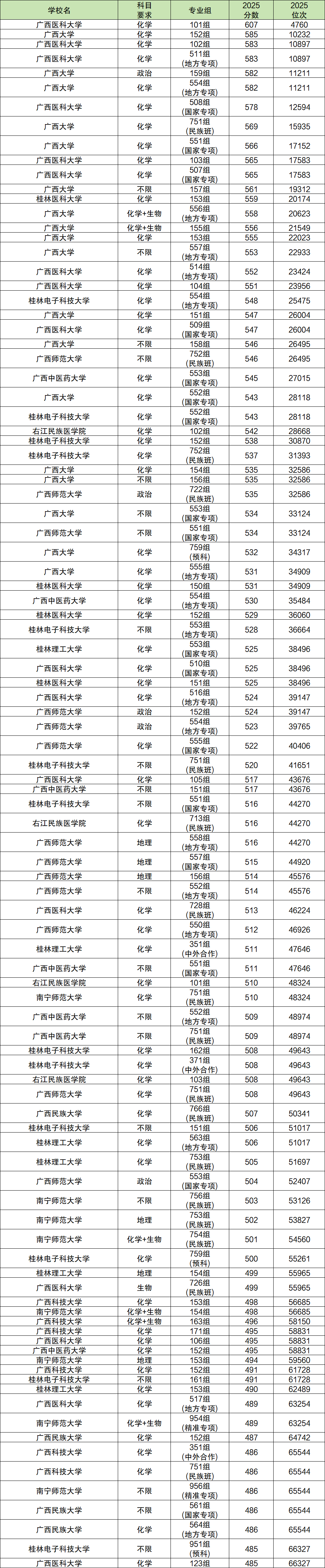 按照2025年录取分数线从高到低排序,为大家展示了广西本科大学录取分数线最高的100强名单,可查阅: