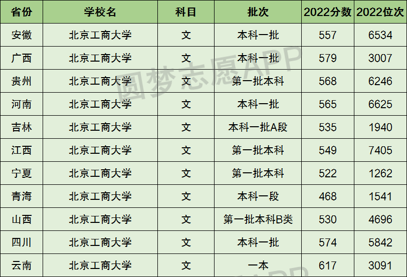 1、北京工商大学在全国普通高考省份的【文科】招录数据,包含招生批次等信息: