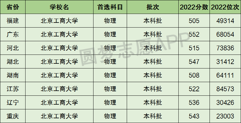 下面圆梦志愿将为大家展示北京工商大学2022年在全国各省市的最低分数线和位次,大家可以在了解北京工商大学在全国各省详细招生批次的同时,也顺便看看北京工商大学的招生录取分数线是多少!