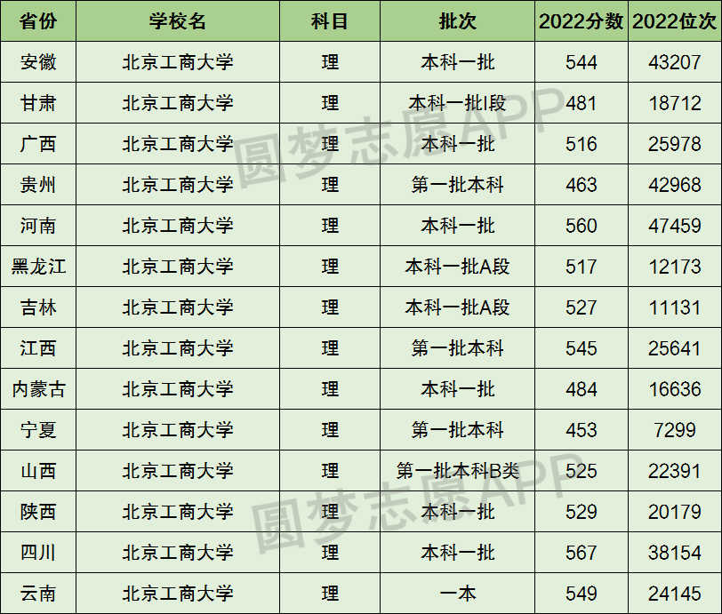 2、北京工商大学在全国普通高考省份的【理科】招录数据,包含招生批次等信息: