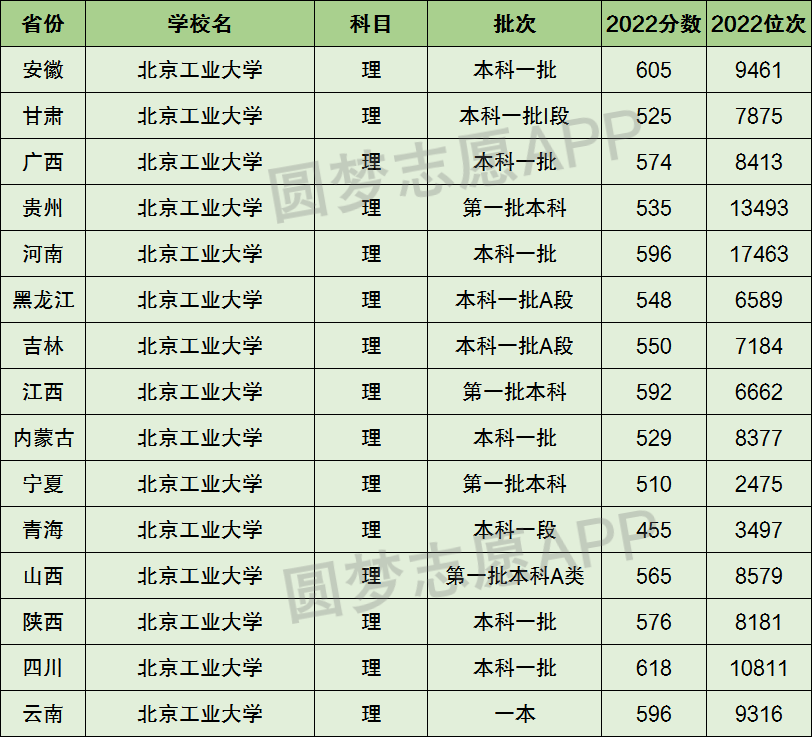 1、北京工业大学在全国普通高考省份的【理科】招录数据,包含招生批次等信息: