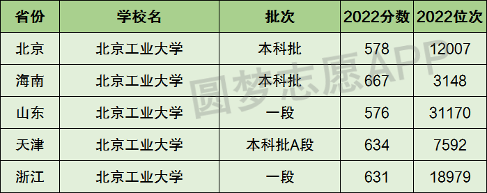 下面圆梦志愿将为大家展示北京工业大学2022年在全国各省市的最低分数线和位次,大家可以在了解北京工业大学在全国各省详细招生批次的同时,也顺便看看北京工业大学的招生录取分数线是多少!